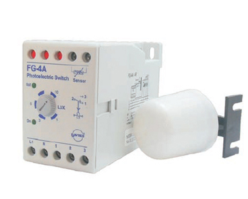 FG series Summary FG series photoelectric relays use optical sensors to monitor environmental sunlight. They are usually used in gardens, streets or shop windows. They open the lighting system after dark and close after daybreak. The photoelectric cell sensor is a CdS photoresistor covered with a sealed case. The resistance of the photoresistor varies according to the light intensity. If the brightness value is lower than the set lux value, the relay will open the output after the specified delay time.